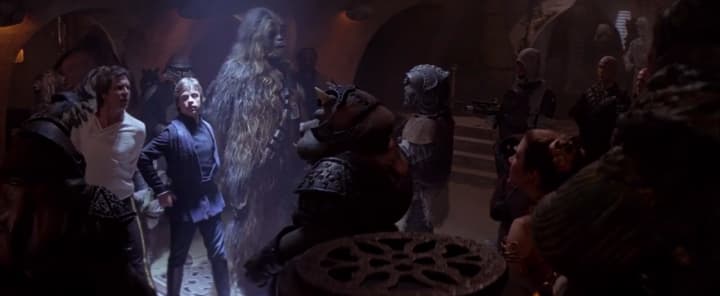 But I bet you're wondering why I HATED Return of the Jedi. And I thought it would be obvious. Let's start from the beginning, where the main characters are saving Han Solo from Jabba the Hutt.