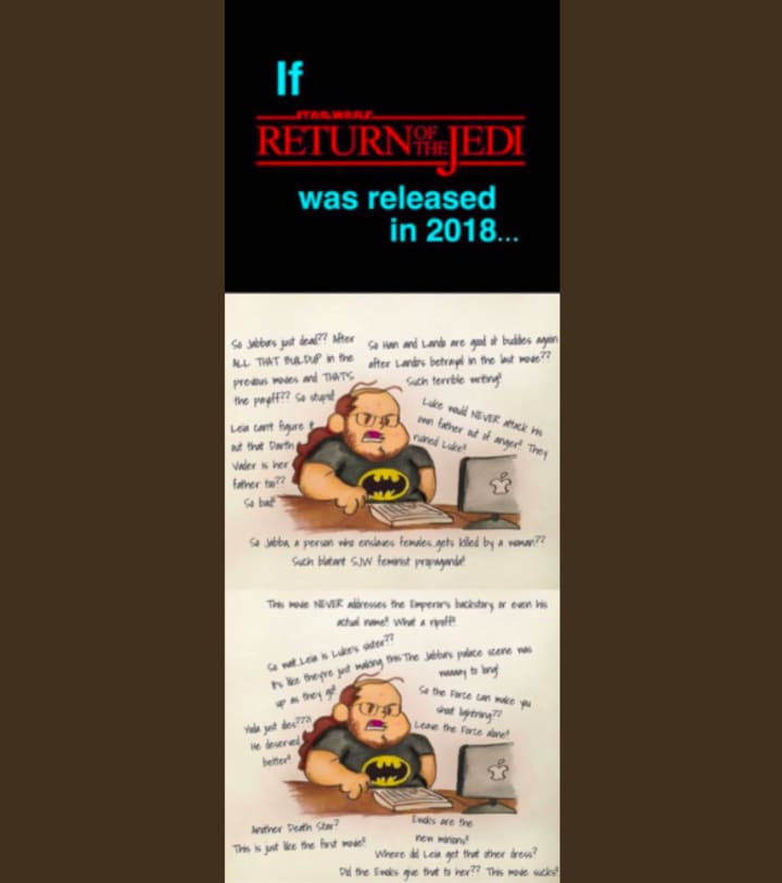 Before we begin the satire article, I want to say that I liked both Return of the Jedi and The Last Jedi. The Last Jedi had some obvious flaws, but it is my opinion that people are overreacting to them. So, what if Return of the Jedi was released to the Star Wars fans of today? Let's take a trip to 1983...