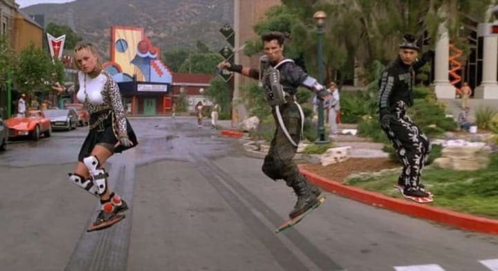 The hoverboards in Back to the Future 2 are much-loved - but were also very, very dangerous. During one critical scene, four members of the stunt team were attached to a large crane, which swung them back and forth to build up momentum. They'd then be crashed through the window of a clock tower, before a button would be pressed to release them and drop them onto airbags behind the window.