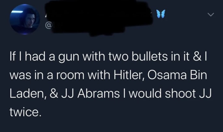When The Last Jedi came out, I did not like it at all and to this day I have only seen it a handful of times. But just because I didn't like the film I did not go out and threaten anyone saying I was going to harm them because I wasn't happy with the creative direction of the film. The only thing I said was that I thought it was going to go into a different direction and them I moved on with my life. I think we have a responsibility to keep our mouths shut during times where we have nothing nice to say and be respectful to those who are trying and working their hardest to bring us new stories and forms of entertainment.
