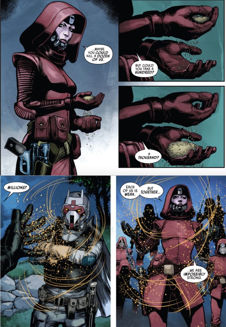 Revenge seems to have been Maul’s prime motivation through all these years. When he was cut in half on Naboo by Obi-Wan Kenobi, his hatred and desire for revenge kept him alive. A decade later, he wanted revenge on his former master, who had seemingly tossed him away and taken on a new apprentice to take over the galaxy. Over time, Maul’s strategy changed and evolved. The most recent Marvel’s Darth Vader #15 shows that the former Sith Lord has come to rely on power by numbers, quite in contrast to the Sith’s Rule of Two.