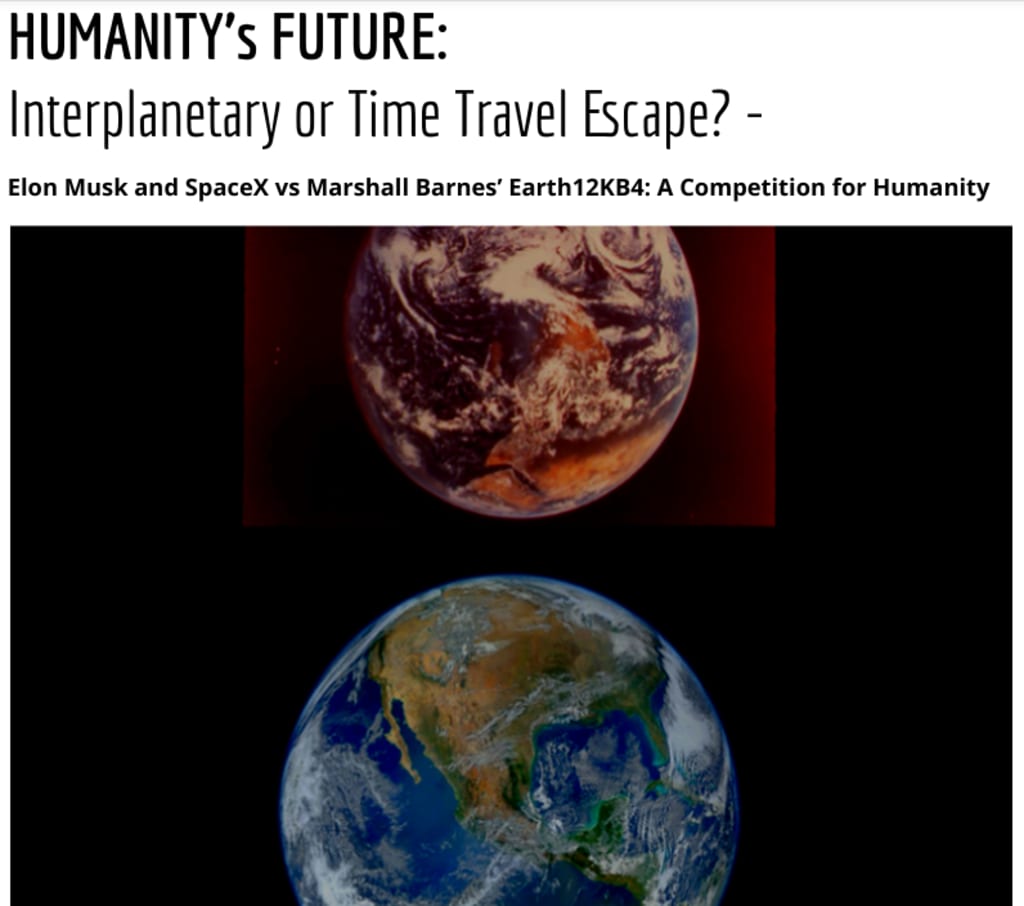 The origins of my effort for a time travel startup, now called, Earth:12kB4