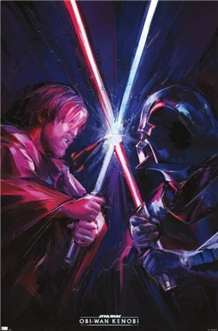 The first looks more like a painting vs. a picture and depicts Obi-Wan and Darth Vader’s lightsabers clashing in sparks of blue and red. What is interesting about this poster is that because Vader’s lightsaber is closer to Obi-Wan, Obi-Wan’s coloring is more of a reddish tint and Vader’s is more of a blueish tint due to Obi-Wan’s lightsaber being closer to him. Art style or perhaps showing something more? Obi-Wan's lightsaber hilts look a little different from his hilt in Revenge of the Sith, to which Reddit user AnakinisSkywalker, said “It’s a mix of his ANH and ROTS hilts.” Does this mean that we might see Obi-Wan getting a new hilt to match his different one in Star Wars: A New Hope? Or is it just an artist’s choice? It is never said canonically that Obi-Wan does get a new hilt, but it cannot be denied that the hilts do look different. We shall see.