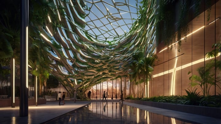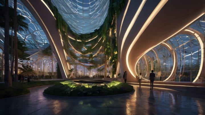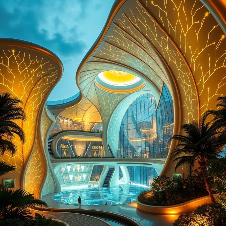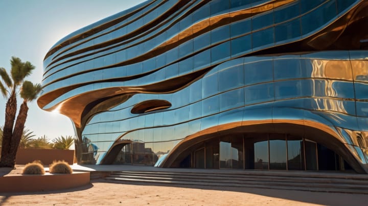 To bring this vision to life, I turned to AI tools like Midjourney and DALL·E, platforms that transform abstract ideas into stunning visuals. My process began with moodboards filled with images of golden sands, sleek skyscrapers, and intricate Arabic patterns, blending them into a cohesive inspiration. I fused specific elements - sand flowing into glass, desert winds curving into architectural lines, and the soft glow of a digital sunset - creating a narrative of harmony.