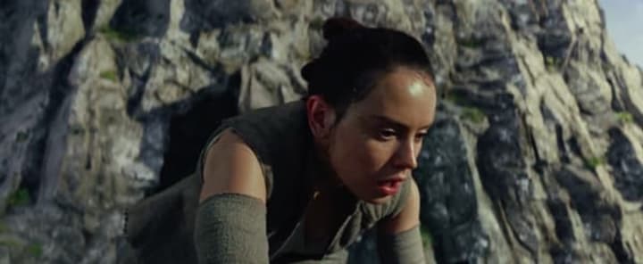 In a haunting series of visions, Rey sees images that represent light and darkness — and then, in a strange twist, she refers to sensing "a balance." With these words, the trailer gives us a glimpse of ancient books that have presumably been secreted away in the ruins of the Jedi Temple on Ahch-To. A hand wipes away the dust to reveal a logo we Star Wars fan know so very well: the symbol of the Jedi.