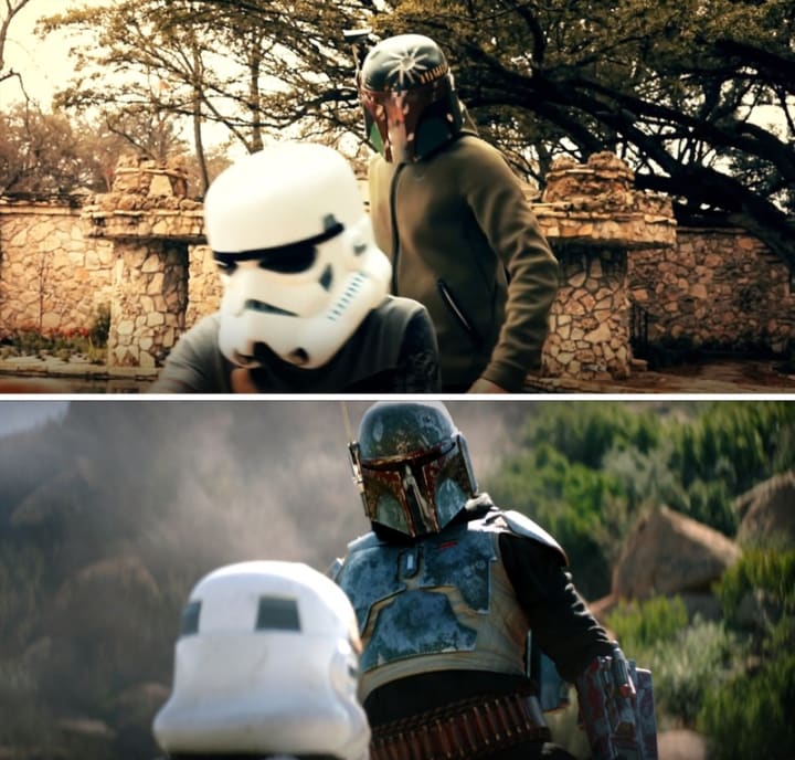 "To illustrate what I was talking about, I took my Boba Fett and Stormtrooper Halloween costumes and put them on my sons and went into the backyard and filmed Boba's arrival."