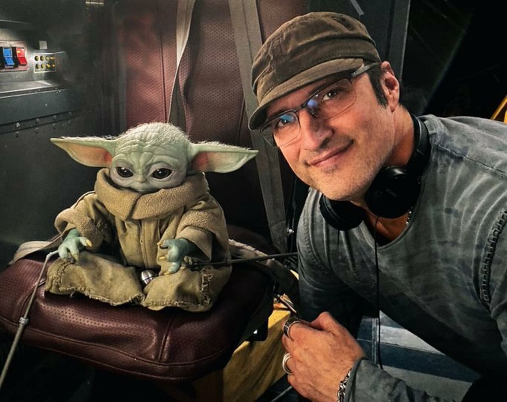 Director Robert Rodriguez Jamming Out On Set With Baby Yoda