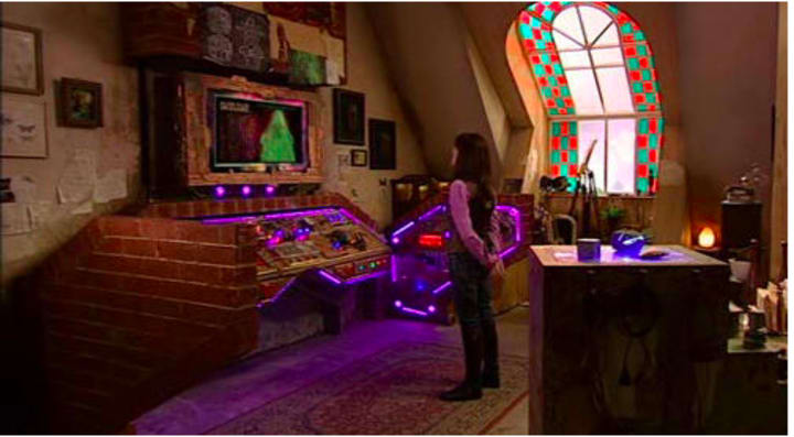Sarah Jane in her attic with Mr Smith