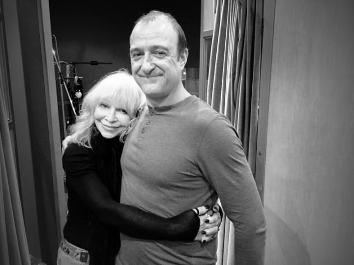 Katy Manning (Jo Grant) and Tim Trealor (Third Doctor) at the recording of the set. Source