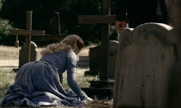 The Cain and Abel anthology also ties in with the previous theories that Westworld is the Garden of Eden, with Dolores as Eve. Admittedly that would make Eve their mother, but I have that one sussed too. A screen-grab from Episode 4 shows robotic Dolores digging up a grave with her name on it. If Dolores was in fact based on a real woman, she could indeed be a relation to Ford or Arnold. It would explain why she is one of the longest serving hosts — created in memory of someone "real."