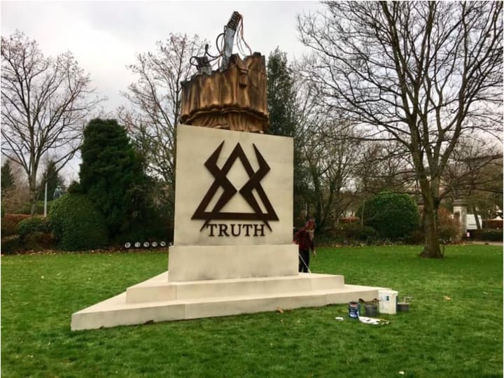 With all that put aside, it looks as though Steven Moffat is set to leave Doctor Who after Christmas in an explosive way. Literally. Fan photographs have been spread across social media resembling a monument with a triangle symbol with the word 'Truth' written underneath it. However there appears to be what resembles a quarter of a Weeping Angel body with two sword like props sticking out of it. But, it appears the Weeping Angel has been exploded or blown itself up as part of its plan. Are the Weeping Angels hiding a secret and the truth is about to come out? Obviously it's going to be kept confidential what this even is and what it's actually about, but believe me fans are eager to know now!