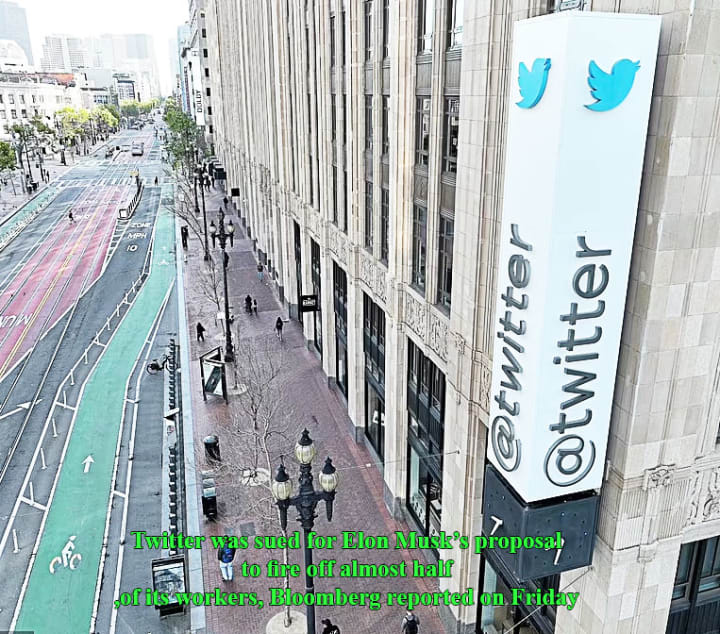Twitter was sued for Elon Musk’s proposal to fire off almost half of its workers, Bloomberg reported on Friday, citing a class-action complaint filed in a San Francisco federal court.