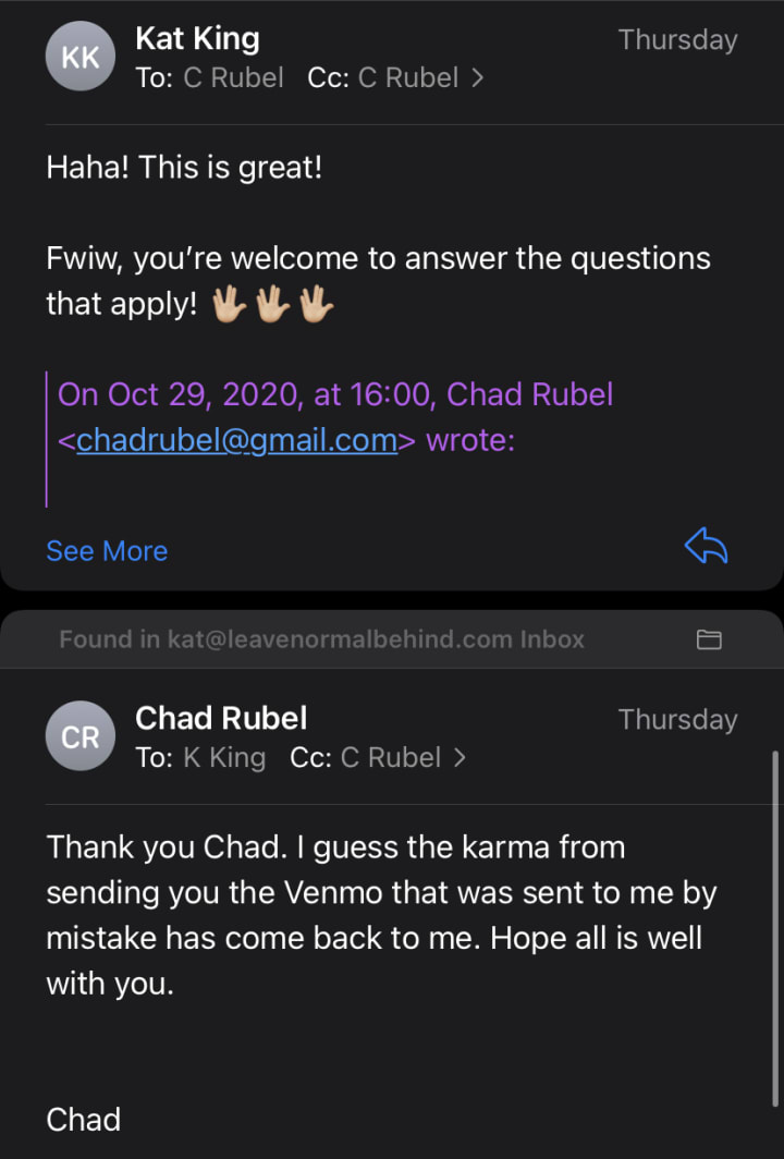 A couple-three things. First,I have to start off with a tremendous thank you to Chad Rubel and CBS for authorising this interview. Second, there’s an adorable little anecdote no one asked for that I’m gonna add in here just so that I never forget it.