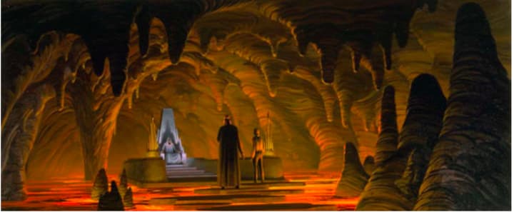 The Original Trilogy was heavily shaped by Ralph McQuarrie, and one of his classic designs showed Luke approaching the Emperor - with Palpatine seated on a throne in a vast lava lake. Although we don't see this location in Rogue One, it was incorporated into the overall design of Vader's home!