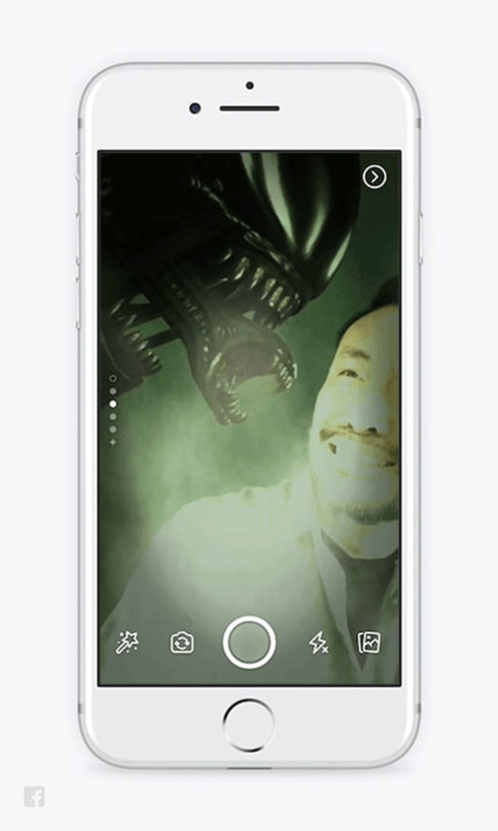 20th Century Fox has partnered with Facebook to premiere an exclusive ALIEN: COVENANT Facebook Camera Mask as part of their newly launched Facebook Camera product! The Facebook Camera, which Facebook announced this morning, provides a new way for people to share creative photos and videos. Now more than ever, fans can experience immersive video and express themselves authentically on Facebook.Check out an example of the ALIEN: COVENANT Facebook Mask below. To try out the new Alien: Covenant mask on Facebook, swipe right to access the camera from your Facebook app on iOS or Android.