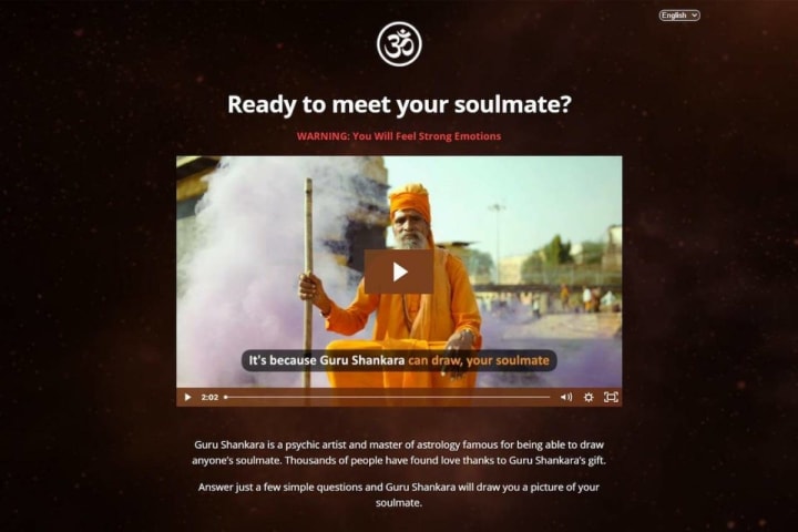 Guru Shankara is a psychic artist and master of astrology, famous for being able to draw anyone’s soulmate. Thousands of people have found love thanks to Guru Shankara’s gift. Answer just a few simple questions, and Guru Shankara will draw you a picture of your soulmate.