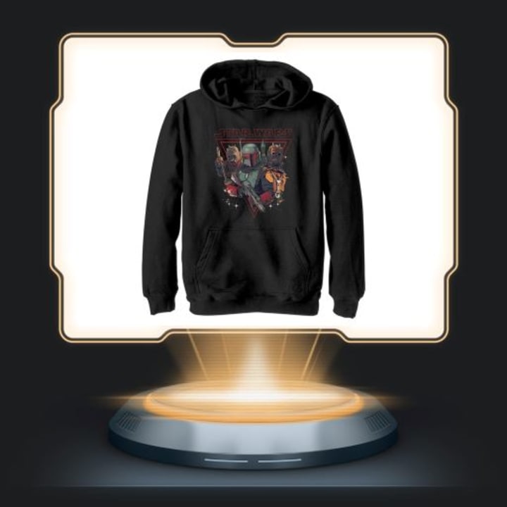 Along with the collectible action figure there is a hooded sweatshirt that features Fett in the center accompanied by two Tusken Raiders at his sides. This is a nod to the first episode of Book of Boba Fett where Fett spent most of that episode imprisoned within a Tusken Raider camp.