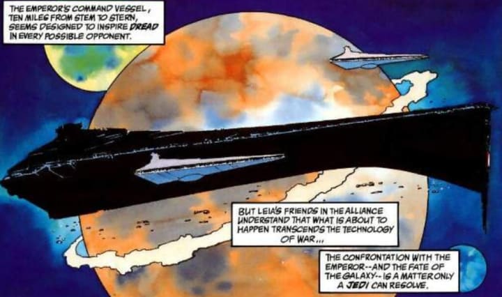 The final weapon shared by both Dark Empire and the sequels was a massive Super Star Destroyer with the destructive power of a full naval fleet. We have the Eclipse in Dark Empire, and the Supremacy in the sequel trilogy.