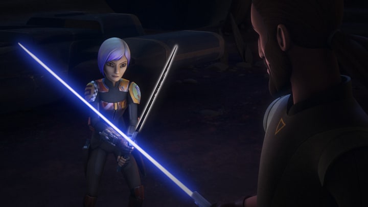 In the series, Jedi Master and Ghost leader Kanan Jarrus learns of the weapon’s thousand-year history through another Mandalorian warrior, Fenn Rau. The Darksaber ultimately falls into the hands of explosives expert and fellow Mandalorian Sabine, who uses it to unify the warring units on her home planet of Mandalore.