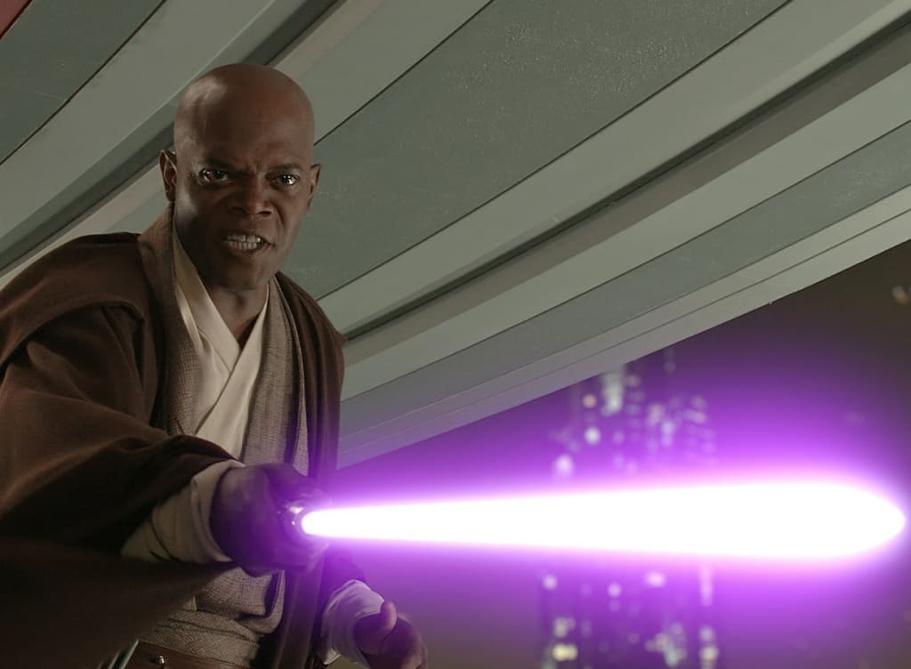 Another really cool and popular lightsaber is that of Mace Windu. Among the most distinctive and fancy lightsabers, Mace Windu's is most recognizable by its purple blade, a feature requested specifically by Samuel L. Jackson. In-lore, the purple Hurrikane crystal used as a power source was gifted to Windu by the natives of Hurikane, in exchange for helping them. Windu's lightsaber hilt is also constructed from Electrum, a rare metal that was only permitted among high-ranking Jedi, and which gives it it's distinctive gold colour.