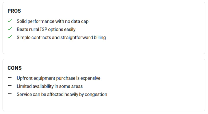 PC Mag describes Starlink as a "Set it and forget it" option, and this is certainly true; you just need to install it properly and use it -the satellite dish even has an in-built heater to melt any snow and ice.