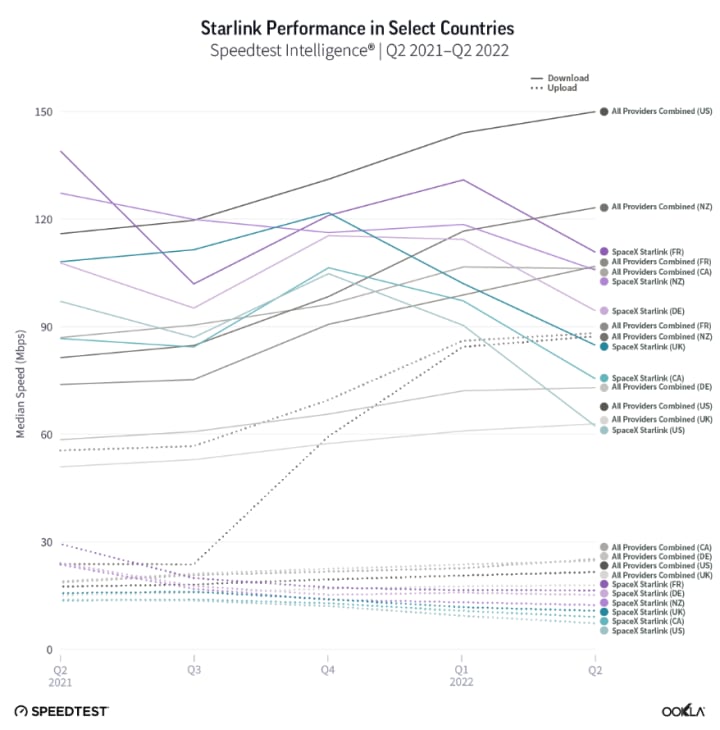 Until Q1 2022, it was all rave reviews for Starlink, but their Q2 2022 report revealed something concerning: "Starlink speeds decreased in every country we surveyed" over the quarter as a result of more users signing up for their service.