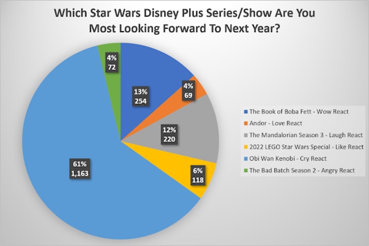 There is no denying that out of all the Star Wars content we are getting this year, Obi-Wan Kenobi stands above the rest. (Sorry, poor attempt at a “high ground” joke) Out of all shows we are getting, this one HAS the most hype behind it. Here is a chart from a poll I did back near the end of last year before the debut of The Book of Boba Fett: