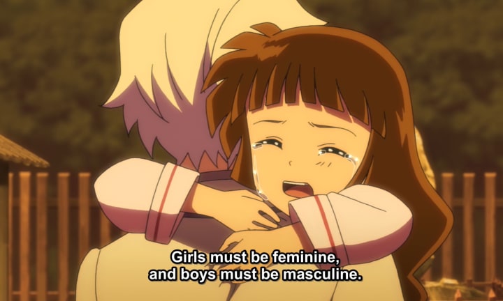 Released in 2020, Yashahime isn't shy to explicitly express its messaging behind gender and feminism. Towa consistently makes references to the norms of the modern era and observes how innately backwards they are. In episode 12, her passionate line, "No matter what era you live in, what girls feel will never change," indiscreetly stands out from the rest of the episode's narrative.