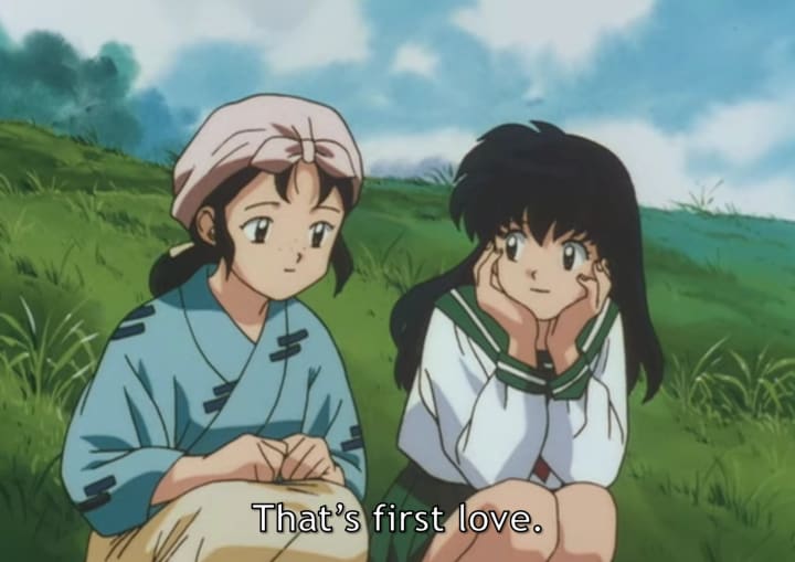 Though some may view Kagome's response to Koharu's "unhealthy" and "brainwashed" or "conditioned" love for Miroku as poor writing, or blame it on Kagome's adolescent ignorance, I find that hard to believe. The compelling aspects of Kagome's feminism aren't that she'd outright denounce the sexist mechanisms of the feudal era or explain to everyone why what Miroku did was wrong (applying a modern approach, though it's evident that the entire gang looked down on Miroku for his age-inappropriate lechery anyway). Kagome's feminist approach is her belief in the agency and free will of the woman, Koharu. She never berates Koharu for these feelings, belittles her wishful thinking, or tries to force some type of moral superiority over her. Kagome never invalidates Koharu. And this is the critical point of her complementary feminism to Towa. Towa verbalizes the feelings of girls never change regardless of the time period. When I heard this line, I painted an instant connection with an homage to the original series' depictions of a "first love" and the ongoing conflicting feelings of the women in the InuYasha franchise. The concept of a "first love" transcends through time and Kagome's validation for Koharu complements Towa's statement and vice versa. Kagome and Towa aren't the only ones who demonstrate conflicting internal feelings — Sango, Kikyo, Kagura, Rin, Kagome's mother... they all have their moments of internal conflict about their own life choices.