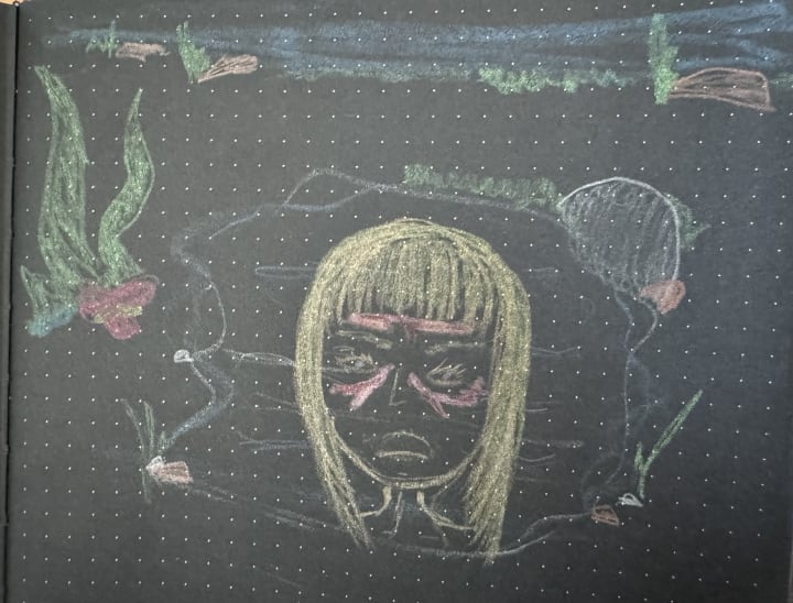 As she shook herself, frustrated at her clumsiness, she saw her reflection in a puddle next to a roaring stream. Parts of her face were torn apart and red. The traces of her removed headDevice were imprinted on her body forever.