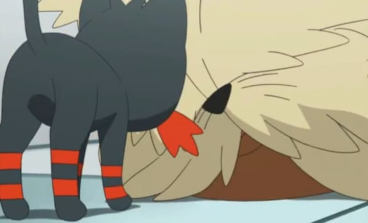 Litten then attempts to comfort Stoutland during his last hours. Some time during the night, Stoutland walks out of the Pokémon center and returns to its home under the bridge. Litten follows Stoutland to the bridge, where the Pokémon finally passes away.
