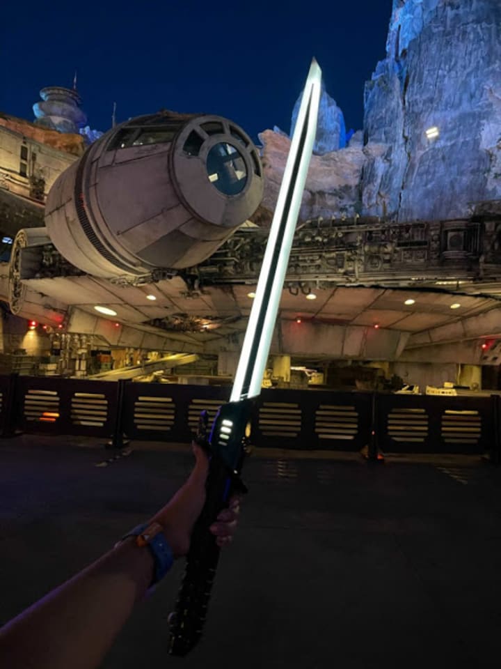 Both Disneyland and Disney World had been closed since March 2020 in response to the COVID-19 pandemic. Disneyland reopened recently in Anaheim, CA on April 30, 2021, while Disney World in Lake Buena Vista, FL had reopened in July 2020. This author’s friends visited Disneyland this past Monday, May 17, and sent pictures confirming the rumor that had been floating around social media. The Darksaber is now available for purchase at Dok-Ondar’s Den of Antiquities in Galaxy’s Edge at both Disneyland and Disney’s Hollywood Studios! This author almost choked on her copycat homemade blue milk.