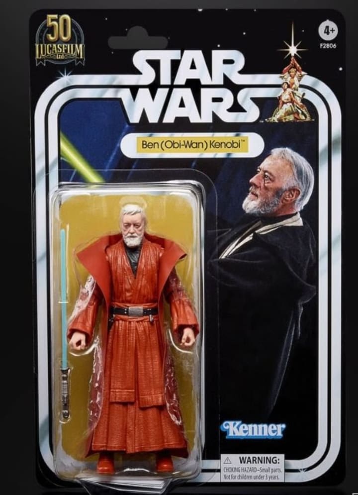 Here is Ben Kenobi with the vinyl cape, extra-white hair, and opaque lightsaber blade! Maybe keep this one in the package, since those old capes ripped easily.