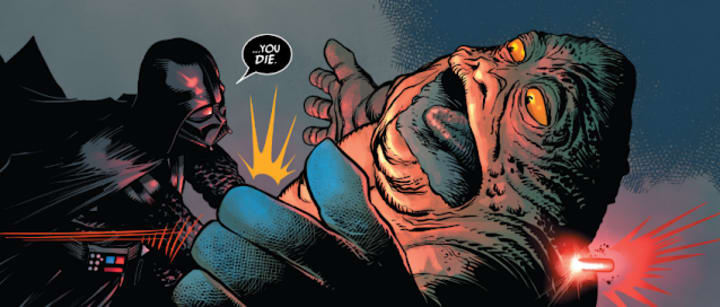 But unlike Nute Gunray the Hutt didn’t beg for mercy. Instead he confessed that he had been in league with Crimson Dawn from the beginning and never intended to comply with the deal he had with Vader. In the end, Vader killed Bokku too, who in his dying moments self-destructed his flagship hoping to kill the Sith Lord. Vader narrowly escaped, returning to the Executor to await further orders from Sidious.