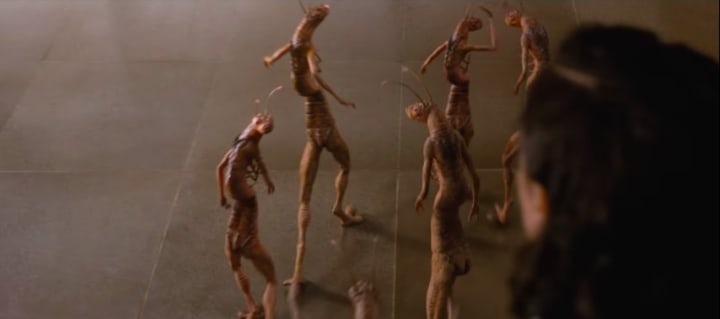 Here, M turns and sees the Worm Guys from the original two MIB films. These sorry little ingrates were some of my favorite characters of the original trilogy.
