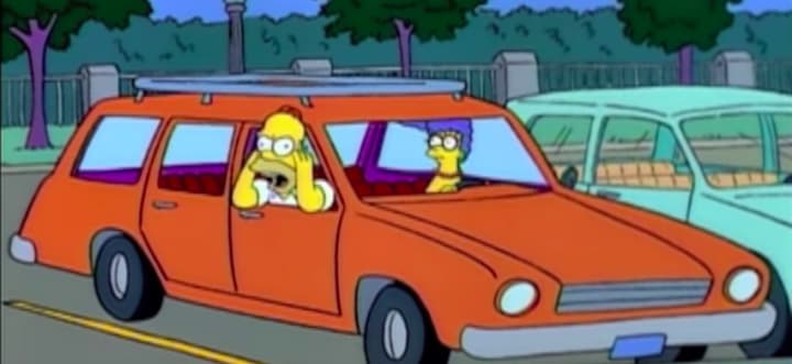 In this scene, H and M are in a car, and I assume they are either chasing some aliens or trying to get somewhere fast. They are trying to find a "big red button." M presses it and the car flies away.