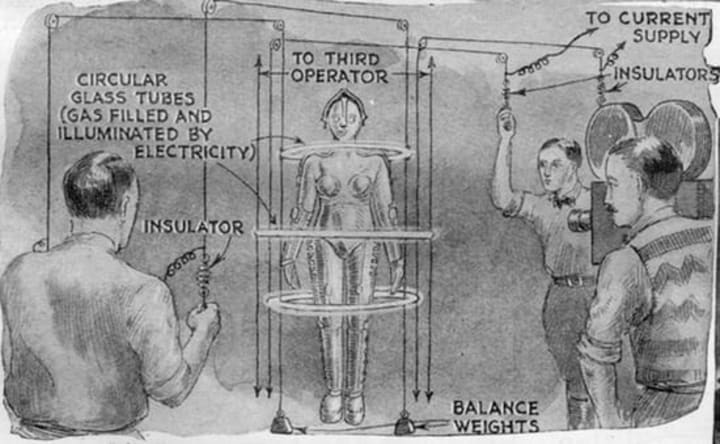 Even now, we may struggle to get our heads around quite how they created Metropolis, and special effects maestro Eugen Schüfftan was highly praised for his pioneering techniques. From using tubes of electricity to create a floating effect, to the use of miniature cities, Schüfftan's technique of using models was used just two years later by Hitchcock in Blackmail. For those wondering how they created the rest of the state-of-the-art effects, an article from 1927 shows you exactly how Lang and co. did it. Appearing in the magazine Science and Invention, it offers a glimpse at how the production crew did it all those year ago.