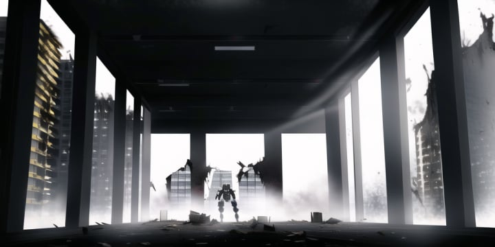 The last thing he saw was the blinding light pouring in from the end and sides of the hall and a monstrosity standing at the far end as his body was riddled with a dozen holes from the onslaught.