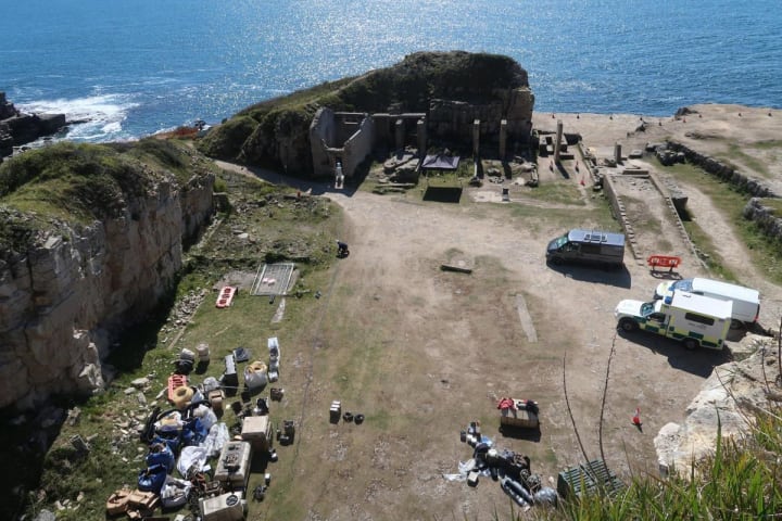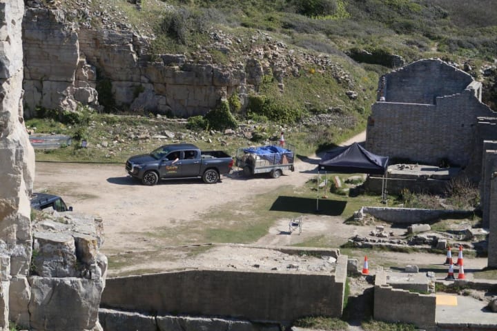 These new photos also show some large stone ruins and pillars of an old building, which don’t appear to be recreated by the production crew. Perhaps the biggest difference between the previously leaked set photos and the new ones from Winspit is the lack of any kind of set decoration. The first set of photos had a lot of ships and props on the set to add detail. These photos show very few props on set, and the few that are there don’t appear to be fully constructed or placed yet. This could imply that the scenes filmed there are more of a hiding spot for a rebel base or perhaps a battlefield.