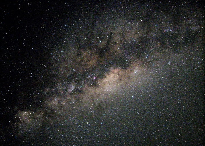 We're located within an arm of our Milky Way Galaxy, which looks like someone threw up a handful of sparkling white stardust, that shaped itself into a wheel, against black velvet we call "the universe." On the clearest of nights, we can actually observe parts of the Milky Way with the naked eye.