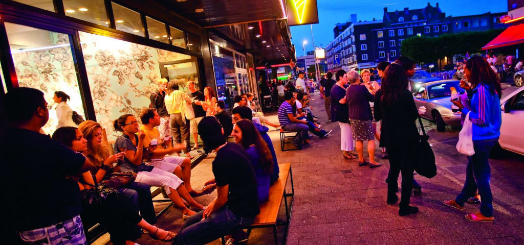 In the bustling streets of a warm