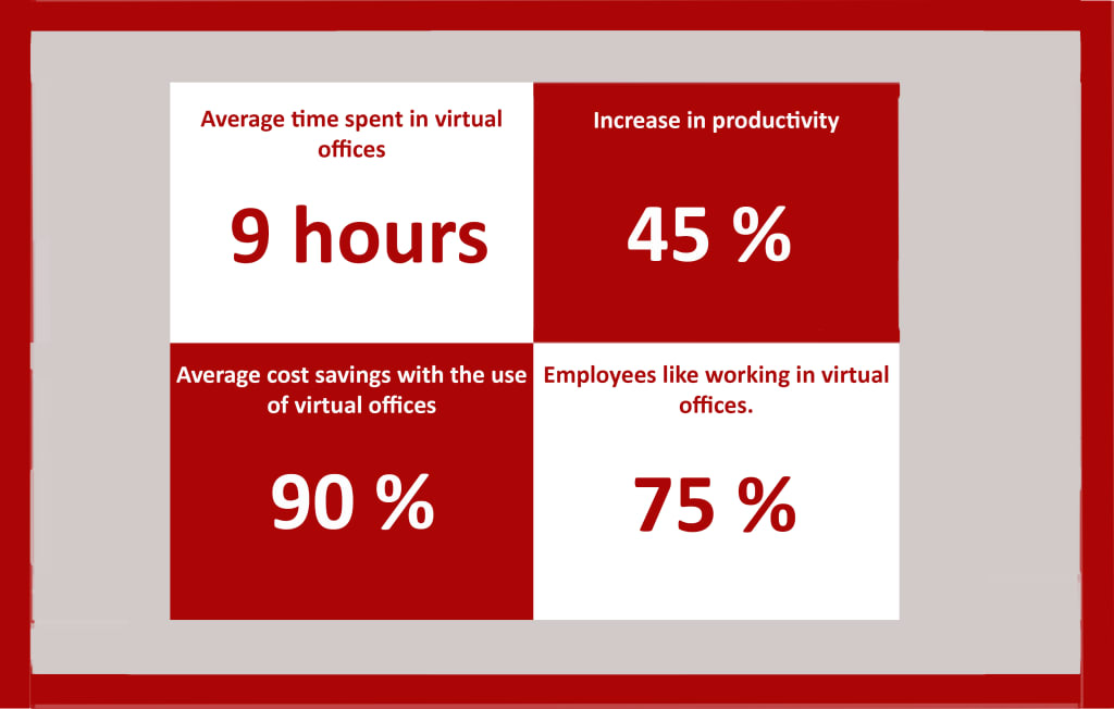 Productivity: The productivity of the employees has increased significantly due to the flexibility of location and time. Virtual offices also save travelers time and expense.