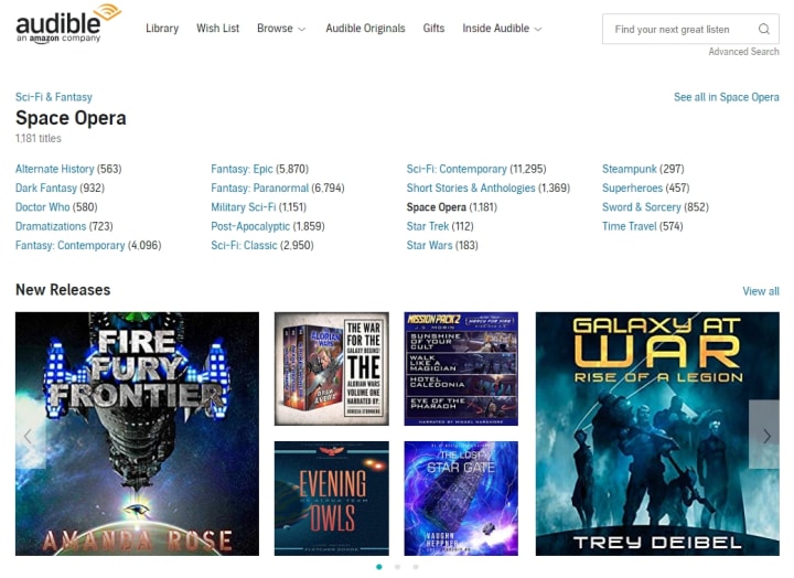 This week the long anticipated Fire Fury Frontier hit Audible. With barely over 1,000 space operas available in audible's library, for sci-fi fans this is a huge win.