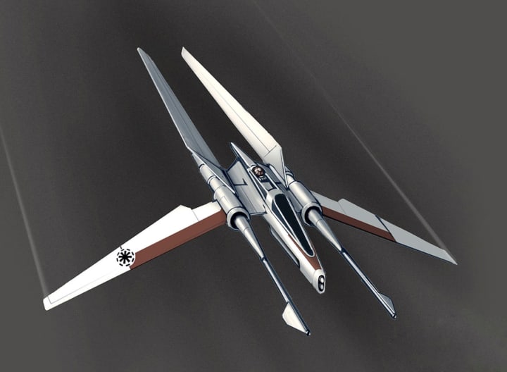 These predecessors of the Jedi Starfighters from the last years of the Republic and the Clone Wars were sleek, insect-like fighters that could accommodate one or two pilots, so that a Jedi Master and his Padawan could fly together. A specialty of these ships was that its weapon systems could only be powered-up by placing a lightsaber in the cockpit, thus preventing the ships from being used by non-Jedi and to make sure that the weapons were not activated light-heartedly.