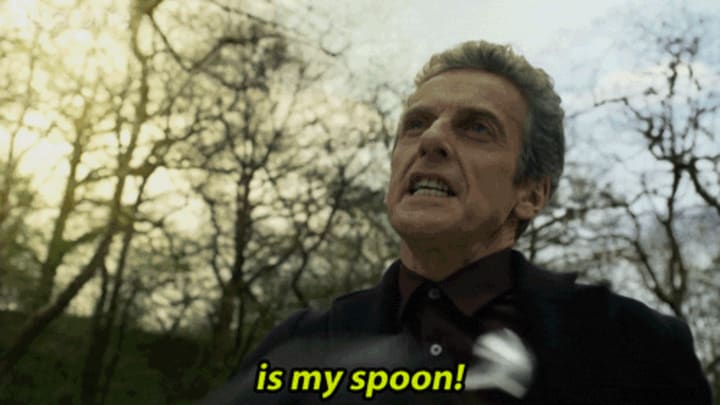 Spoons were a favourite object of her previous incarnation, The Twelfth Doctor, who once used them in a duel against Robin Hood.