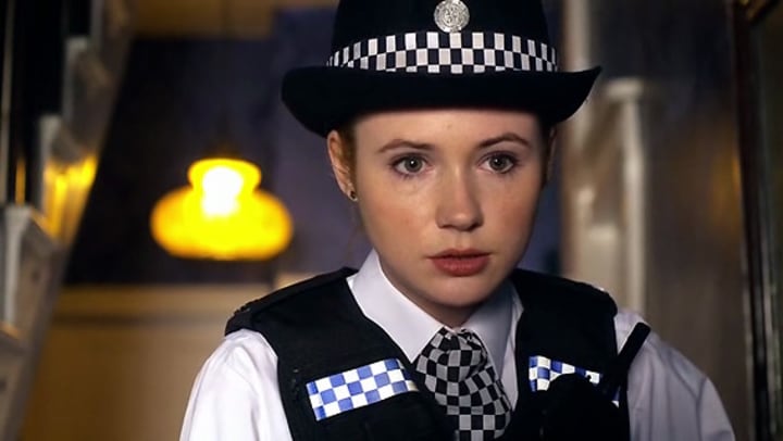 Amy Pond had her first adult encounter with the Eleventh Doctor while wearing a Police Uniform.
