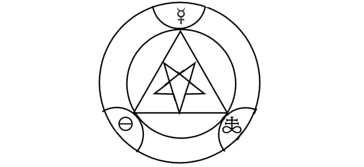 Both of these sigils are presented this book. Make them large enough to fit yourself fully within them