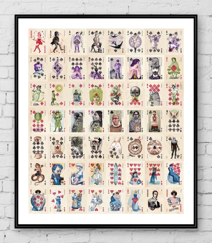 Each card is assigned a meaning that the reader interprets. Unlike tarot where you do one specific, open question, cartomancy can answer yes or no questions and as many as you'd like at a time. Depending on how you learned this particular technique the spreads might be a little different but most of the time after a good shuffle you place all of the cards out and whichever cards are by each other answers different aspects of your life. While you can use a regular pack of cards there are also specific cartomancy cards that have the imagery of what those cards specifically represent.