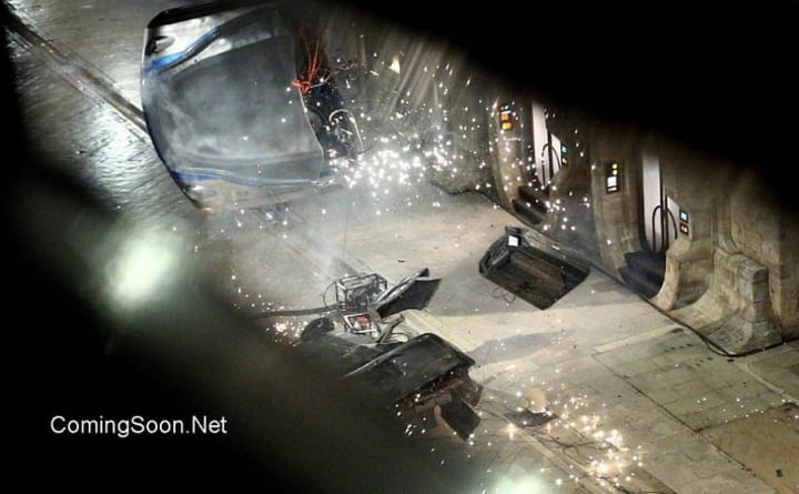 Star Wars Episode 8, the untitled sequel to J.J. Abram's Star Wars Episode 7: The Force Awakens, is currently filming in Ireland. Star Wars Episode 8, will be directed by Rian Johnson, this time around; with Abrams departure from the franchise after helming Star Wars Episode 7: The Force Awakens. Episode 8, now has added multiple alien roles to the focal point of Star Wars Episode 8, indicated by the images embedded below. There's also an image that details a scene wherein the alien diplomats seen in the photos, are in fear of a Force-wielding individual, capable of ripping a land-speeder in half. We don't see any familiar faces on the set alongside them, but we can imagine that some Force-wielder will be in the near vicinity, capable of causing the destruction from afar. Not much is known of Star Wars Episode 8, in terms of confirmed information. The only aspect of the film which has been confirmed, is that Rian Johnson is directing. We just have to wait for the first promotional footage for the film to give us any details about the new entry in the Star Wars franchise. For now, there's a huge compilation of images from the set of Star Wars Episode 8, we can dive into. And speculate how these images will fit into the film. One thing is certain, there's at least one Force-wielder on the set within the images provided below. Accounting for the exploding land-speeder with no physical cause for the explosion, as well as the linear cut down the vehicle makes the situation appear to have a Force-wielder causing the damage to the land-speeder. The images of the set of Star Wars Episode 8 are embedded below, enjoy.