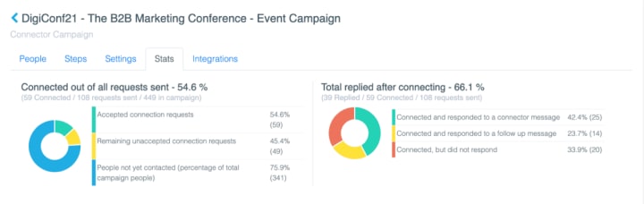 This makes for easy personalization as well. From our testing, we managed to reach a connection request acceptance rate of up to 60%.